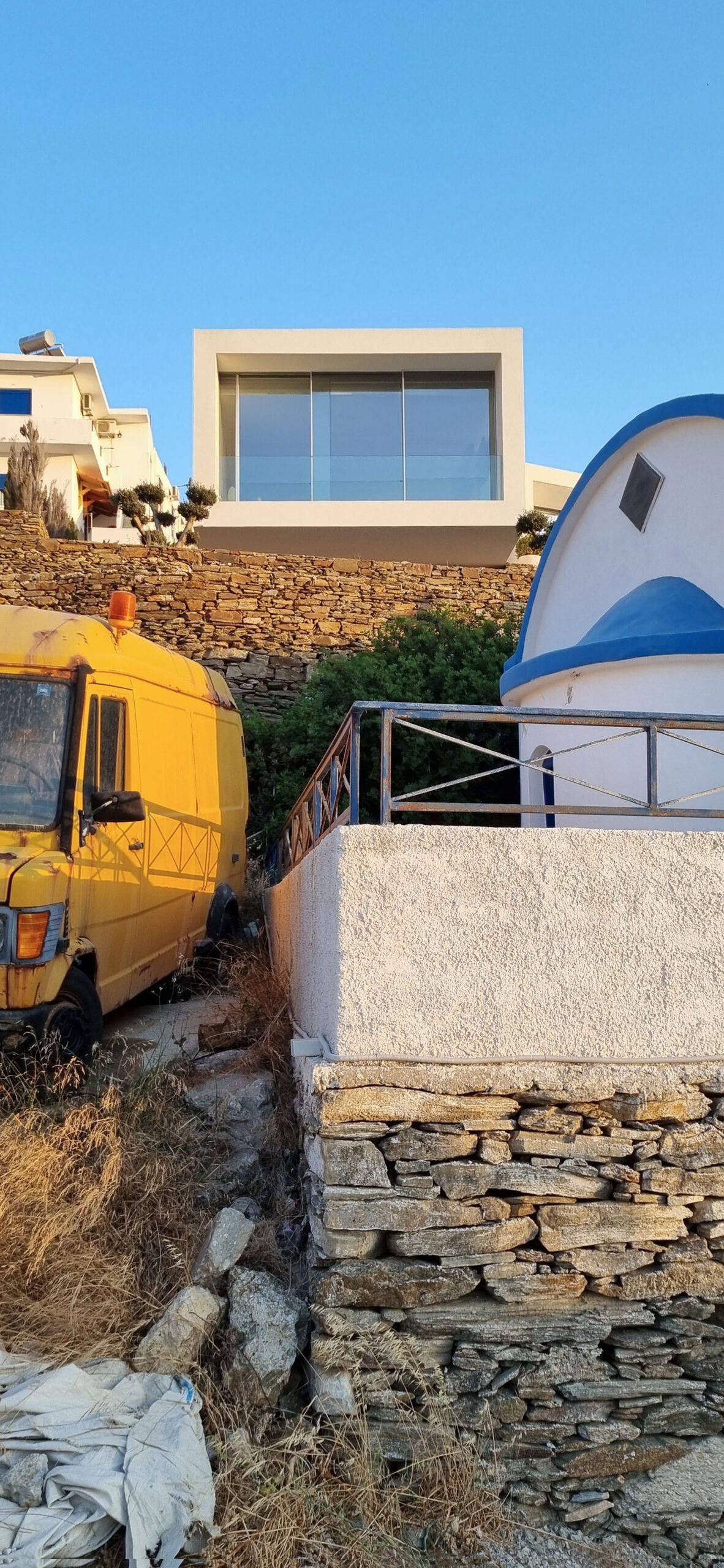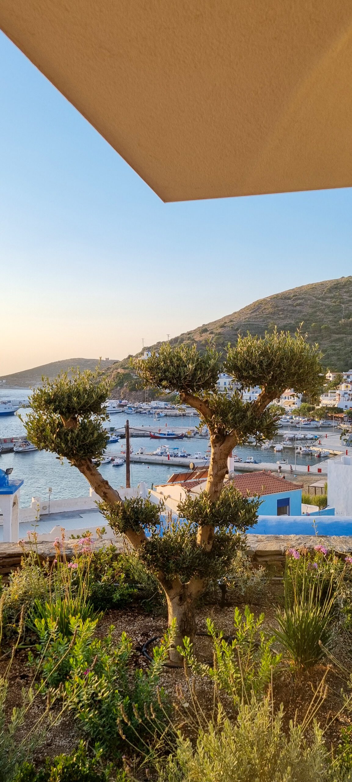 Durante a visita ao local e o levantamento, foram identificadas três vistas principais: a leste, a vila de Fournoi e o vale; ao norte, a orla e o porto; e a oeste, o pôr do sol atrás da montanha de Thymena.