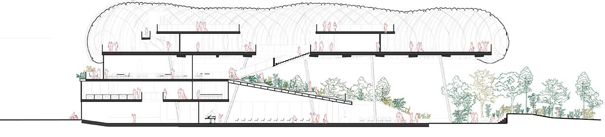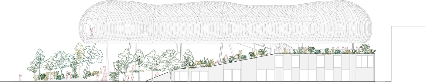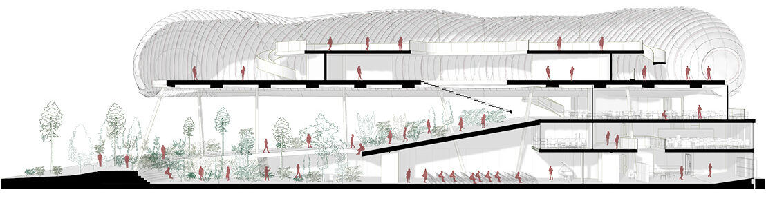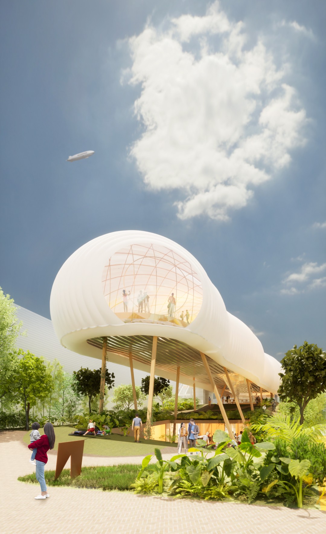 Nosso pavilhão é uma interpretação dessa abordagem esperançosa da vida, com um design que celebra a alegria do encontro humano, destaca a importância da experiência sensorial e nutre a experiência da liberdade espacial. Empoderar as pessoas é permitir que elas se conectem com o que as cerca, promovendo uma sensação de liberdade para seus corpos.